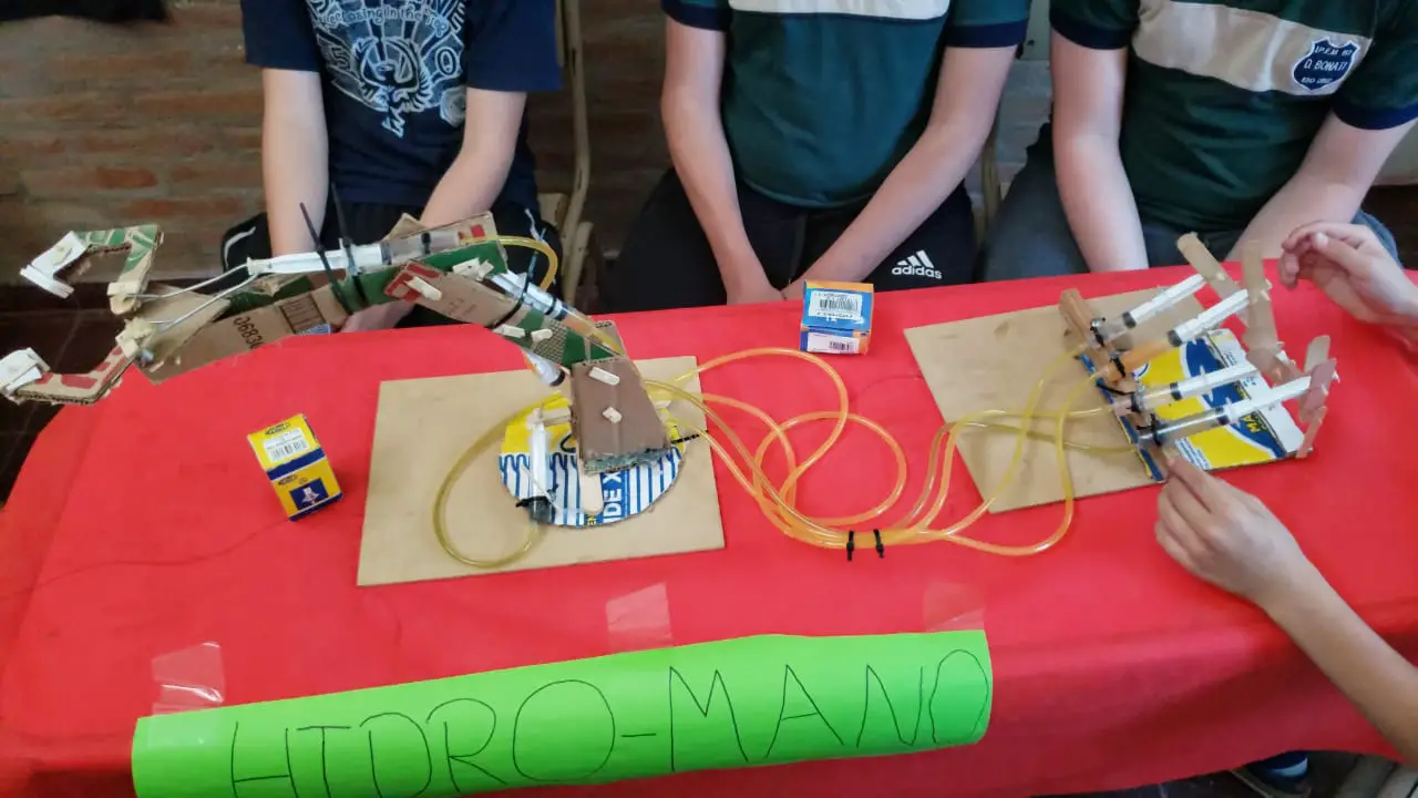 “Martín había visto un video de algo similar y quisimos reproducirlo”, agregó y detalló la gran cantidad de elementos que se necesitaron para realizar la hidro-mano: cartón, silicona líquida, tubos de infusión, varillas de metal, tubos de aluminio, pilas, jeringas, precintos, palitos de helado, entre otras tantas cosas que llevaron su tiempo y dedicación.