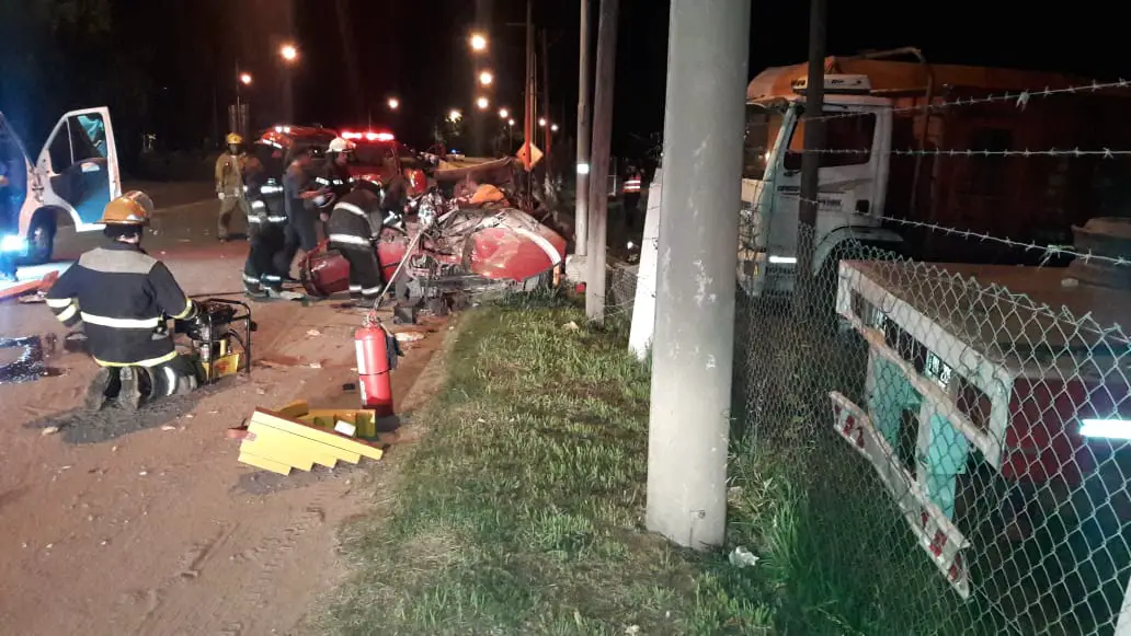 Una mujer fue quien dio aviso a la Policía. El auto en el que se conducían los hombres, en sentido Norte- Sur, dio trompos, rompió un tejido perimetral e impactó contra un camión que se encontraba estacionado en un predio de venta de piedras.