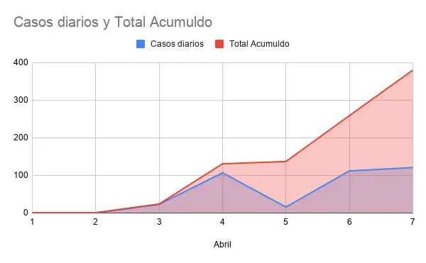 Es el número más alto de casos desde que se da desde el comienzo de la pandemia, que eleva también la tasa de promedio a 54.28 contagios diarios desde que comenzó abril, con un acumulado de 380 enfermos en lo que va del mes.