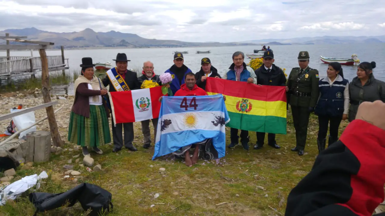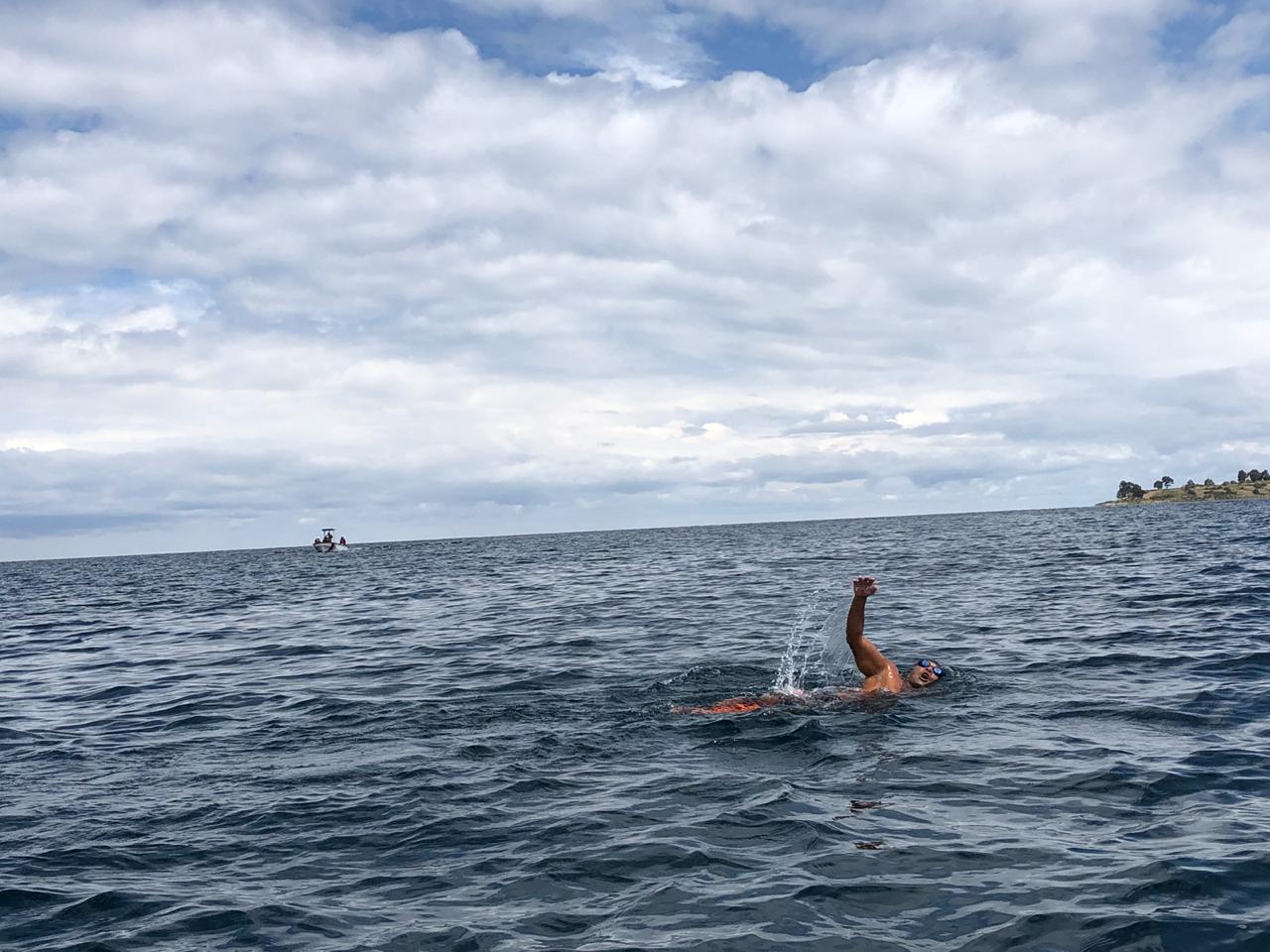 El carlospacense nadó por las aguas del Lago Titicaca y unió Perú y Bolivia en su segunda travesía de la semana.