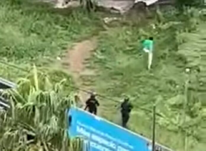 Las imágenes muestran el momento en el que, ante el avance de los efectivos, comienza a defenderse con un palo. Allí fue el momento en el que las fuerzas de seguridad empezaron a lanzar disparos antitumultos para intentar acorralar al delincuente y poder atraparlo.