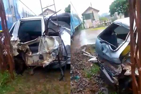 Se trata de un auto marca Volkswagen color gris que, aparentemente, habría intentado atravesar un paso a nivel en la localidad de James Craik.