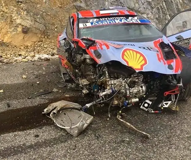 El piloto estonio, salió de la carretera a 175km por hora y calló en un barranco por lo que su auto quedó literalmente hecho pedazos.