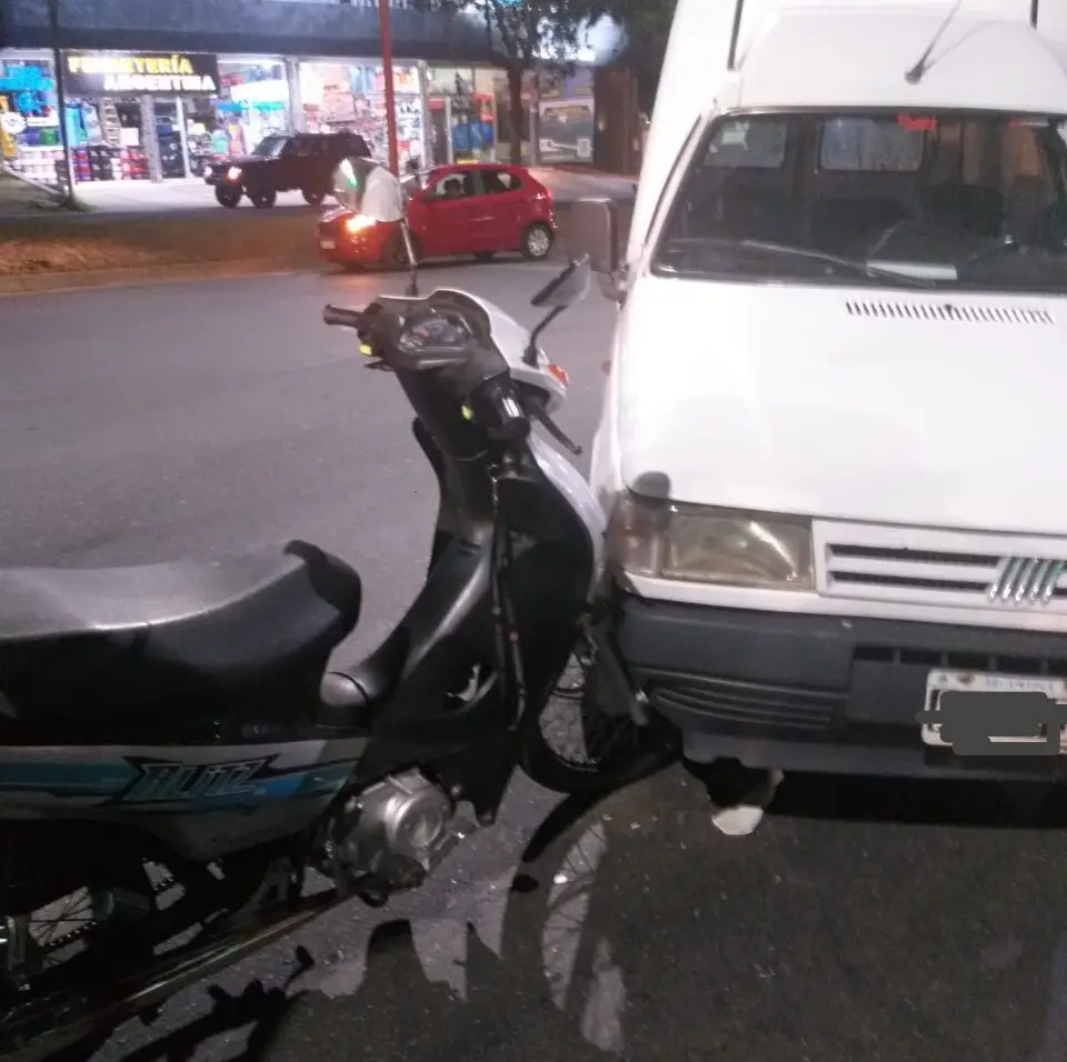 En el hecho, ocurrido alrededor de las 21, se vieron involucrados un motociclista de 18 años y el conductor de una Fiat Fiorino, quién conducía sin ningún tipo de seguro.