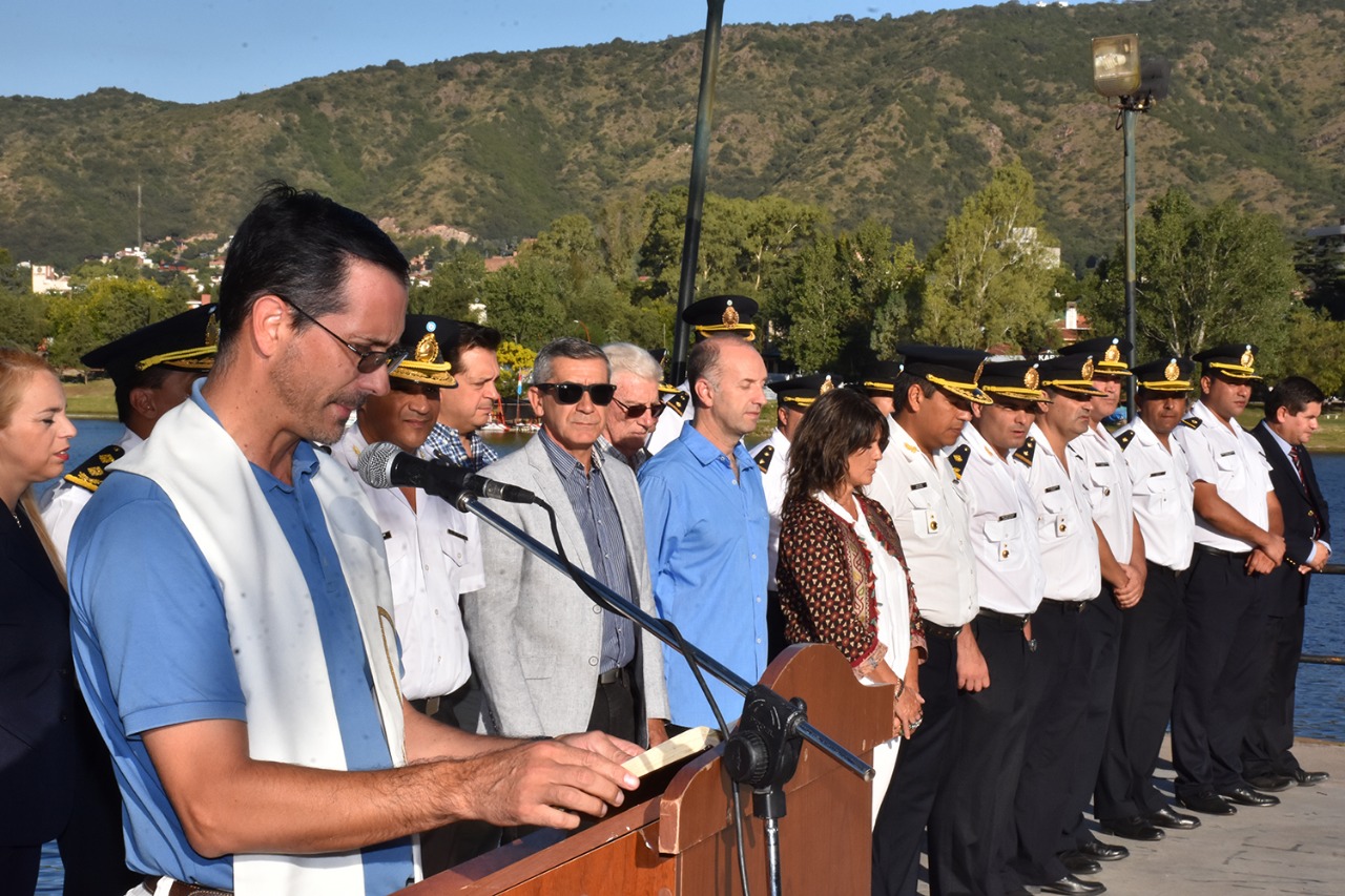Parte del acto consistió en la realización de un simulacro con la activación de 50 alarmas comunitarias, y posteriormente la demostración de los perros policías. Participó también la Banda de Música de la Policía de la Provincia.