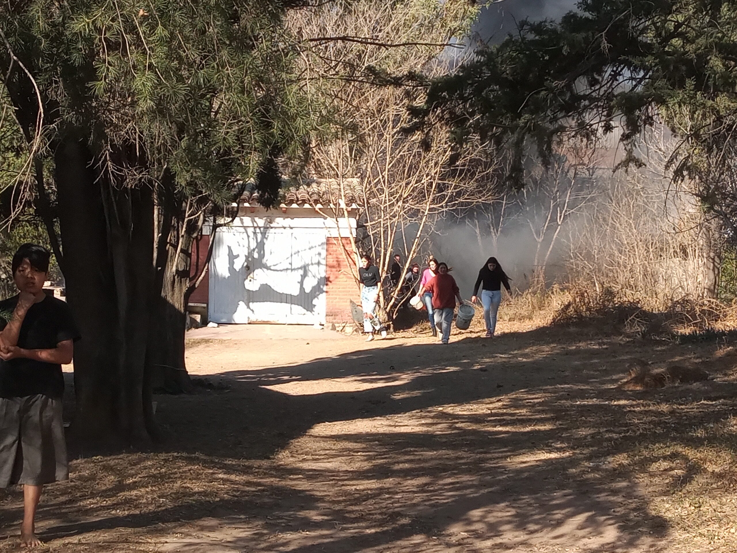 Por motivos que aún se desconocen, se prendieron fuego pastizales en un sector del predio que rodea la casa, lo que generó pánico entre los vecinos colindantes, que vieron amenazadas sus construcciones.