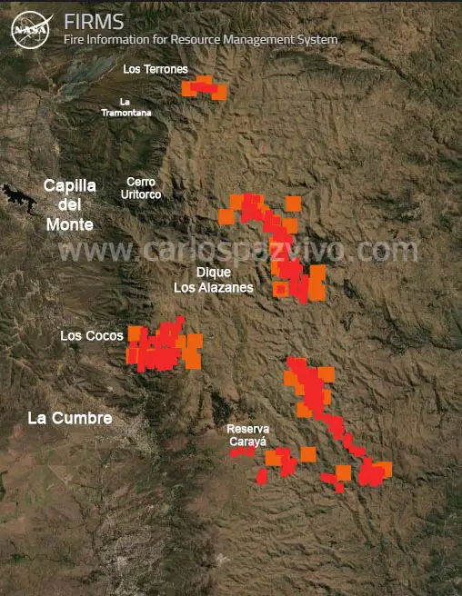 Señaló además que a las 3 de la madrugada, bajo un frente hacia Los Cocos. “Fue en la zona del complejo de la Aerosilla, Coco Park, y hay otro frente activo hacia Cruz Chica y Cruz Grande. Allí hay apostados camiones cisternas para proteger viviendas en el sector y parte de las dataciones de bomberos ingresaron de infantes a trabajare allí”.
