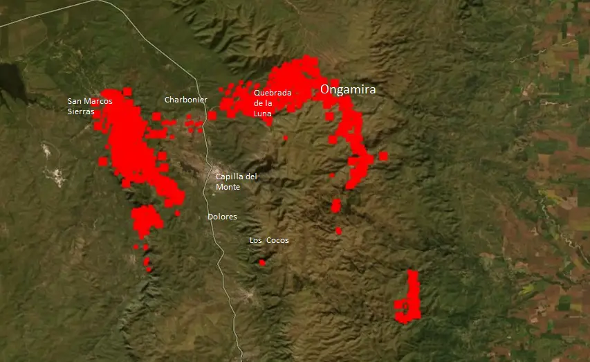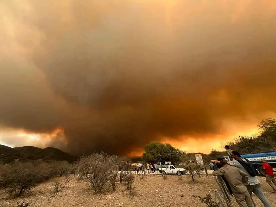 En San Marcos, las llamas rodean el poblado en toda la zona serrana. Durante la noche del domingo, el incendio arrasó con el sector montañoso entre Capilla del Monte y San Marcos. La evacuación preventiva se mantiene en los sectores cercanos a la sierra, y las condiciones meteorológicas, aunque menos desfavorables, aún presentan riesgos.