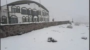 Mientras en la ciudad de Jáchal, se sufre las consecuencia de una tormenta típica de verano con abundante lluvia y granizo, otra zona de San Juan registra la caída de nieve.