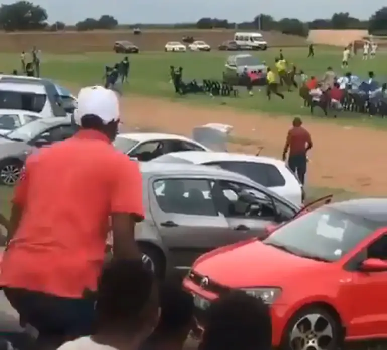 Según la prensa local, el partido que se jugaba pertenecía al campeonato de la tercera división sudafricana y ante las decisiones arbitrales, un fanático aprovechó la irregularidad de predio para meterse con su auto al campo de juego y dirigirse hacia el juez principal.