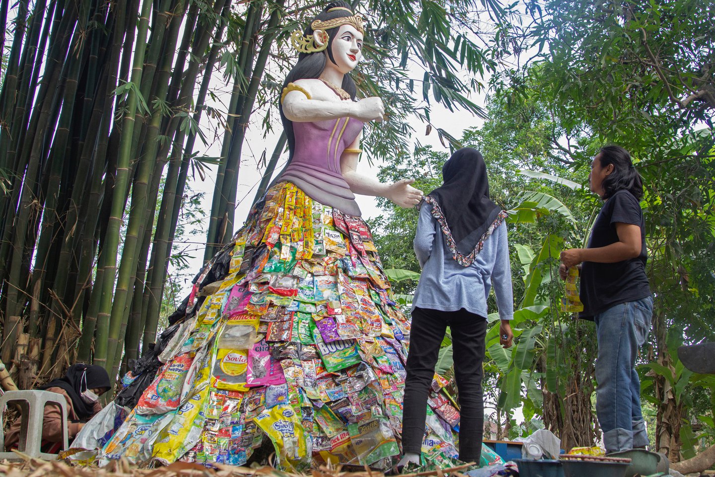 La obra más importante es de la Diosa Sri, con su pollera hecha con bolsas de un solo uso de artículos para el hogar. “Queremos enviar información a las personas para frenar el consumo de plásticos de un solo uso” dijo el fundador del museo, Prigi Arisandi.