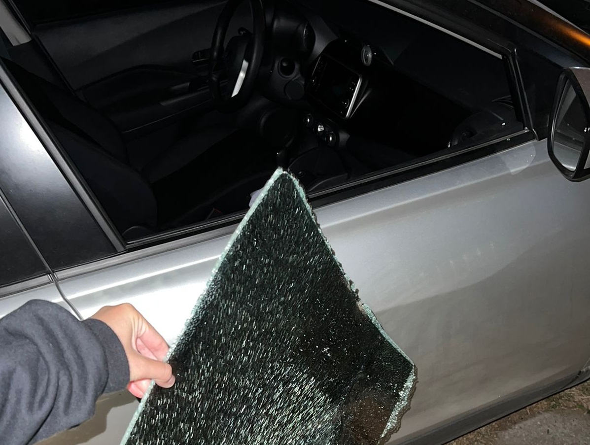 La mujer detalló que «cortaron el vidrio del lado del acompañante. Estaba cortado perfecto, como si hubiese sido con un trincheta, y lo sacaron entero al cristal».