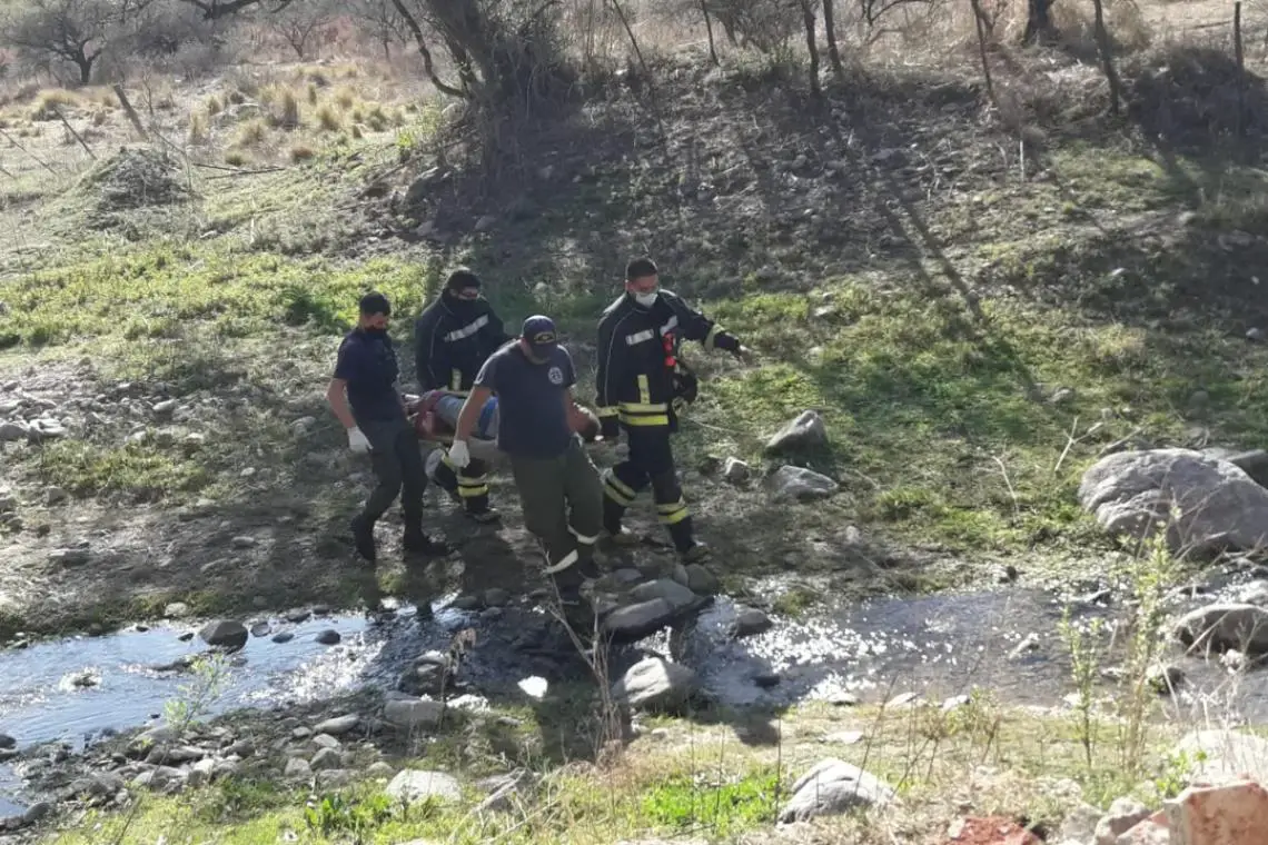 Bomberos Voluntarios acudieron al lugar y, junto al servicio de emergencias y seguridad municipal, pudieron rescatar al hombre que se encontraba con una fractura en una de sus piernas; por lo que fue trasladado al Hospital de La Falda.