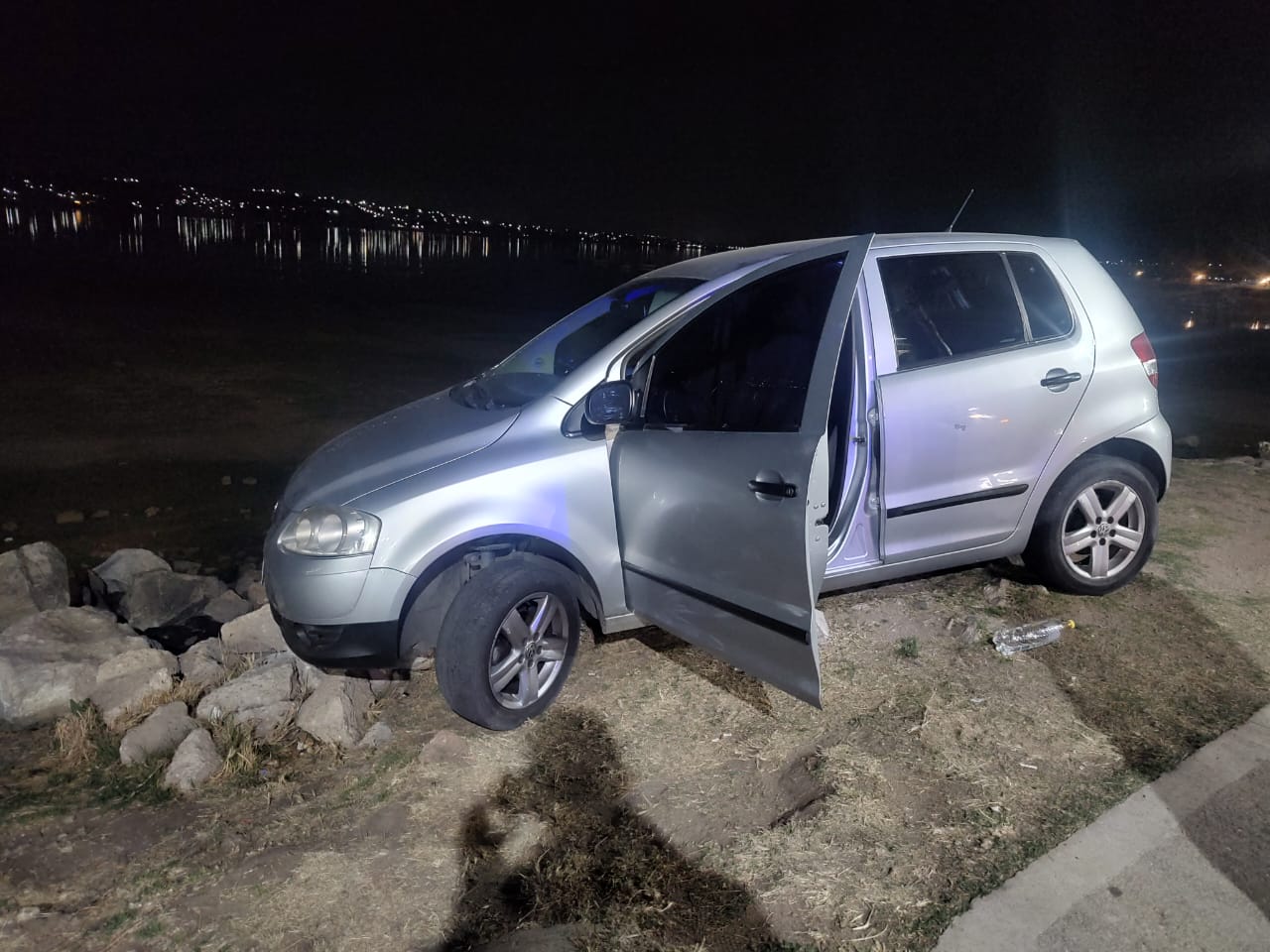 Según fuentes policiales, un hombre de 26 años, conductor de un vehículo Volkswagen Fox, manifestó haber perdido el control del rodado, terminando en la Costanera, al costado del lago.