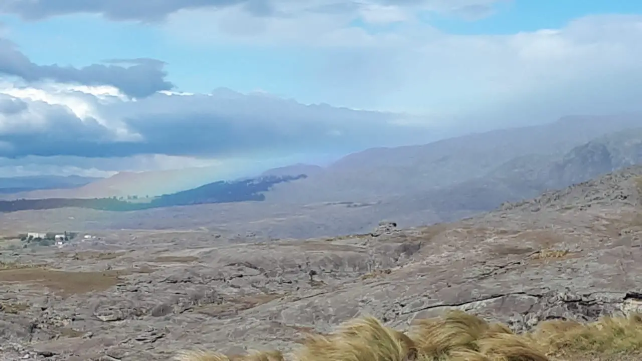 Es más, ofrece una imagen en la que se ve al sector de Los Gigantes, con una porción de cielo totalmente nublado, pero otra despejado y con sol en la que, incluso, se puede observar el arcoiris.