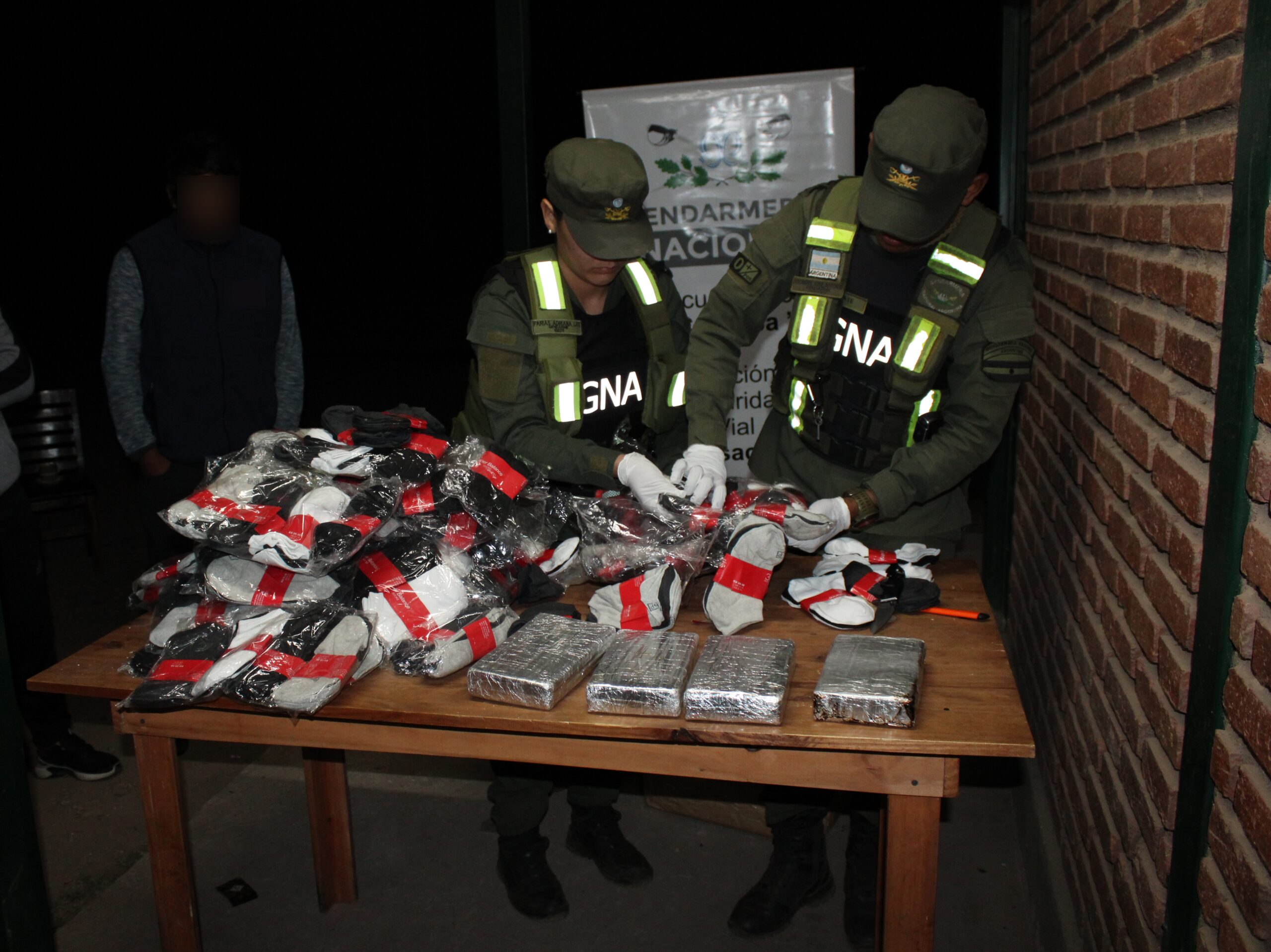 En el lugar, con la asistencia del can detector de narcóticos “Cóndor” y ante la reacción activa como cuando esta ante la presencia de estupefacientes, los funcionarios constataron que había encomiendas que contenían “ladrillos” con droga entre mercadería (toallas, acolchados, medias, calzados).