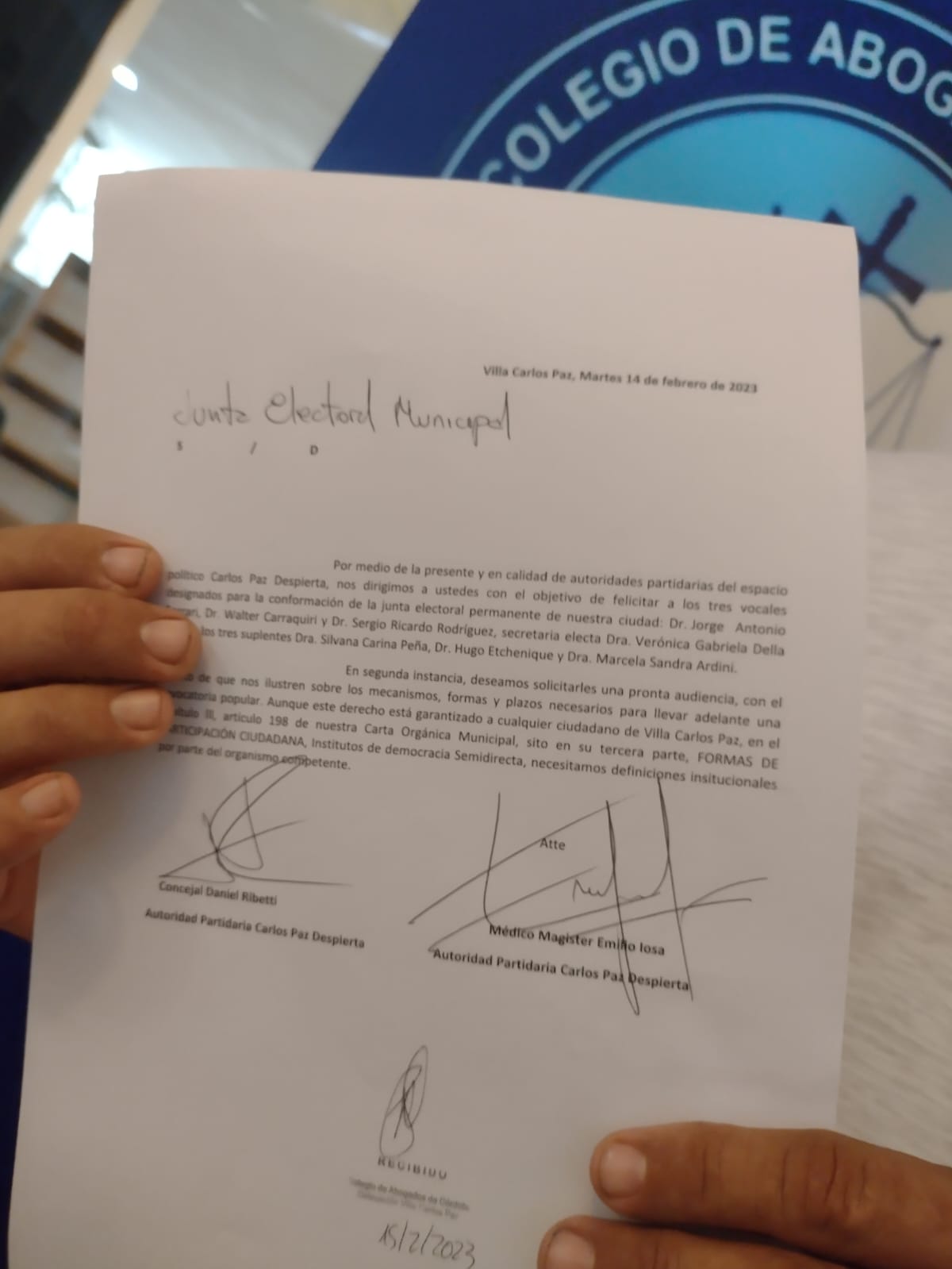 El líder del partido Carlos Paz Despierta concurrió en las últimas horas a las oficinas del Colegio de Abogados de Villa Carlos Paz para presentarse ante las autoridades que conformarán la Junta Electoral Municipal.
