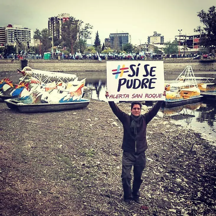 #SíSePudre fue el slogan elegido por el representante de Carlos Paz Despierta para aprovechar la situación y concientizar sobre la situación del lago.