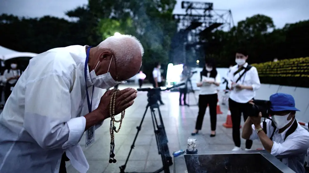 Los participantes, con mascarillas y muchos vestidos de negro, guardaron un minuto de silencio a las 08H15 locales (23H15 GMT del jueves), la hora en que la bomba atómica estadounidense fue lanzada sobre la ciudad hace 76 años.