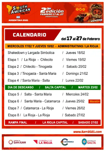 La South American Rally Race arranca este miércoles con el Shakedown y posterior largada simbólica el jueves donde el piloto local Jorge Mansilla, acompañado de otro carlospacense, Ezequiel Amendola, buscarán ser partícipes de la competencia que recorrerá los caminos del noroeste argentino.