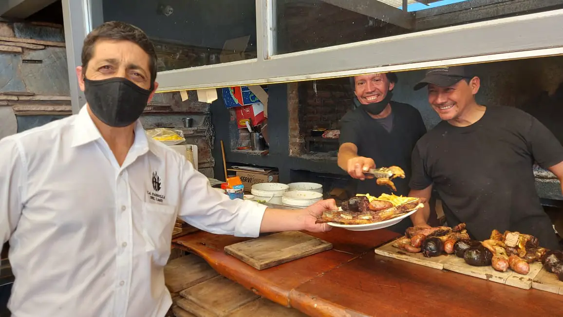Con 36 años en la profesión y un récord de 11 platos en ‘braceo’… acá lo tenemos al querido Jorge Britos, a punto de hacer felices a un par de turistas que, en la mesa 8, encargaron una parrilladita especial.