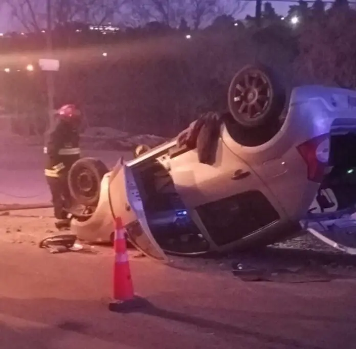 Un vehículo Renault Sandero, conducido por un joven de 24 años y por causas a establecer, volcó sobre la Avenida Italia de La Falda.