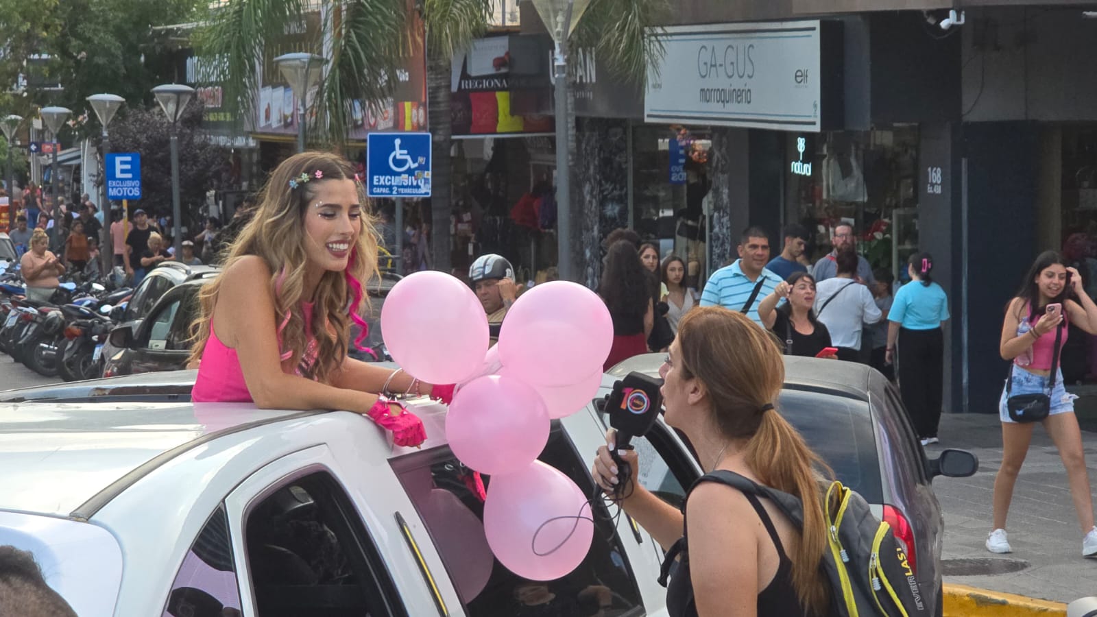 Minutos previos al inició del show juvenil que realiza viernes, sábados y domingos en el teatro Luxor, Juli Poggio sorprendió a turistas que se congregaban en la plazoleta del legendario Reloj Cucú, uno de los símbolos indiscutibles de Villa Carlos Paz.