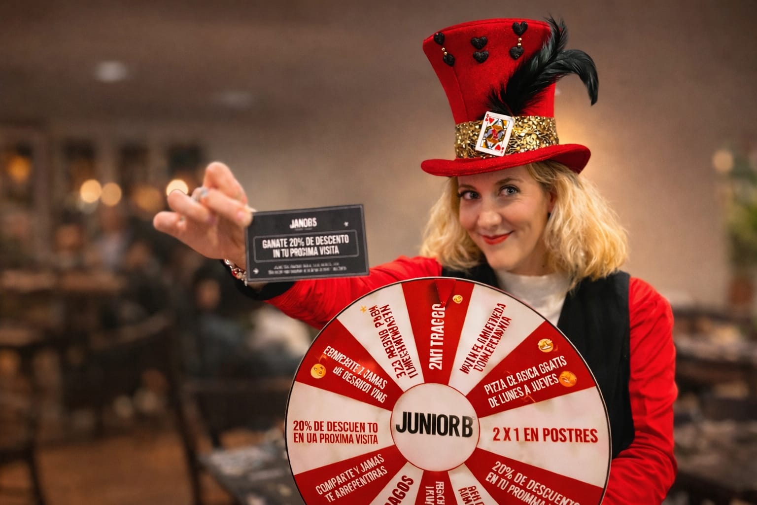 Durante la velada, un anfitrión recorrerá el salón con la Ruleta de la Fortuna, invitando a cada mesa a girarla y descubrir premios, beneficios y mensajes sorpresa. Una dinámica pensada para sumar diversión y romper con la clásica cena tradicional.