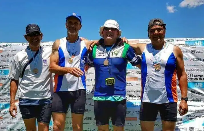 Este fin de semana, la Asociación Cordobesa de Remo se consagró campeona nacional en el Cuádruple Par Máster Masculino F y H, en un bote combinado entre los atletas locales Ricardo Allende y Nelson Rivero junto a Hernán Galdeano y Mario Prado, del Club San Fernando.