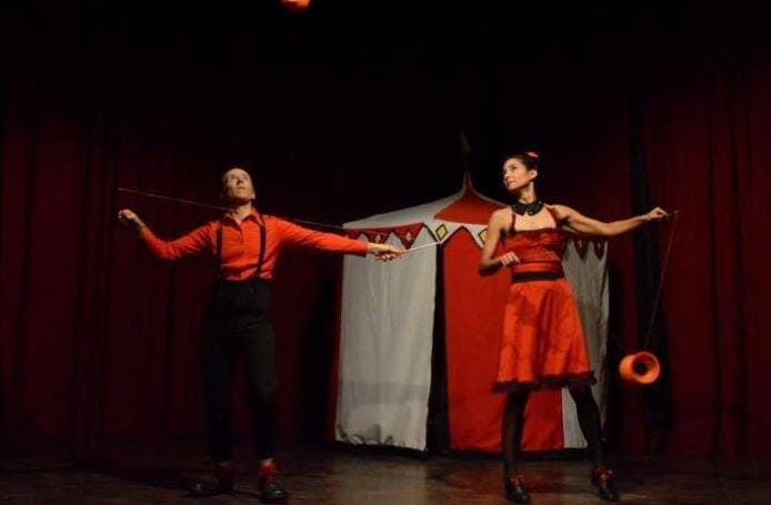 La Compañía Santuanimé presenta su espectáculo de circo, clowns y malabares. Obra en formato de varieté, en la que los personajes Ela y Maca van desarrollando diversos números de un humor delirante y absurdo. Dramaturgia: Javier Goffré, Gabriela Rojo – Dirección: Javier Goffré. Repite el domingo 21 a las 15.