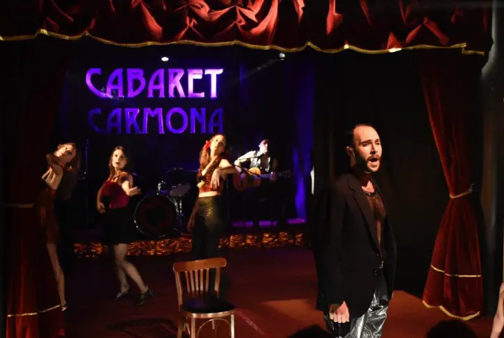 “Con dirección de Gastón Mori, el Cabaret Carmona es un lugar corrido del tiempo, iluminado por los brillos de la noche. Hoy sus integrantes quieren contar una historia de amor, cruzando dos mundos; las historias de amor de Rodolfo, María Luisa, Cardoso y Angélica con la magia y fantasía de los artistas. La Carmona sirve de marco para la tragedia del amor, que atravesada por la alegría despampanante del Cabaret puede finalmente transformarse en algo más que un final feliz”, reza la descripción. Entrada libre y gratuita hasta agotar la capacidad de la sala
