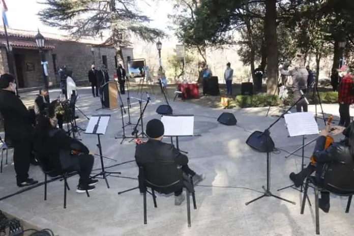 Los Funcionarios encabezados por el intendente Daniel Gómez Gesteira, dos artistas plásticos pintando en Vivo, la locutora oficial Noé Salcedo, 7 músicos, un director de Orquesta… 3 cantantes… un puñado de trabajadores municipales más… mi hermano Neti (marche una CuarenCam con el Pelado) en el impecable sonido, Yani en La Foto Oficial de La Muni… y La Cámara de Canal 2 de CPTV para llevar TODO… “pa’ las casas” vía Redes Sociales.
