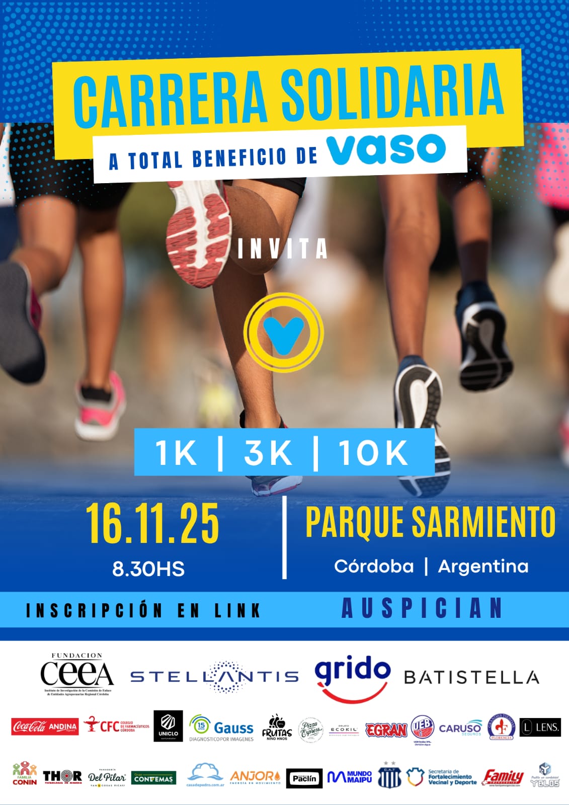 El próximo domingo 16 de noviembre a las 8:30, el Parque Sarmiento será escenario de la Carrera Solidaria de VASO, una iniciativa que combina deporte, solidaridad y compromiso social.