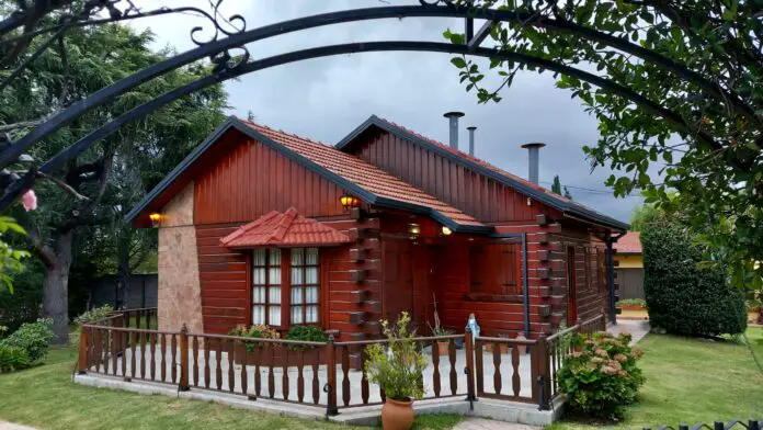 Simulando una rústica cabaña del hemisferio norte, se destaca por su líneas simples y su prolijidad, en el medio de un lote y en falsa escuadra con el mismo… como posando para mi celu, desde la misma vereda.