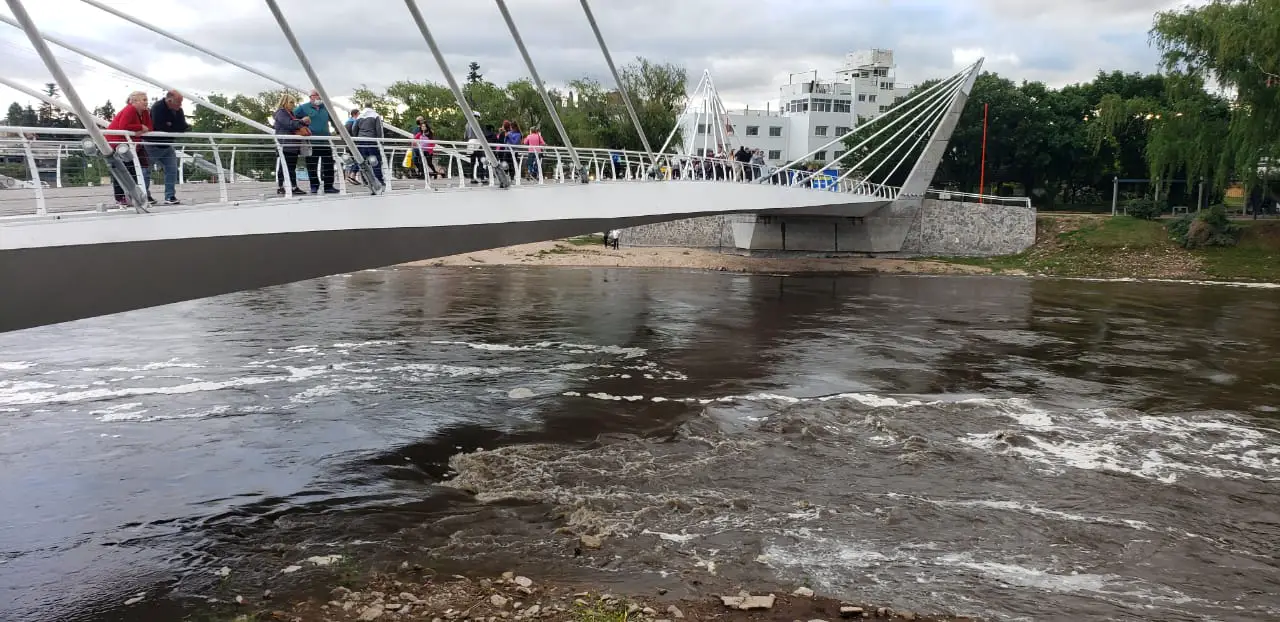 Las imágenes muestran el ingreso de un gran torrente de agua hasta los puentes Central, Centenario y Cassaffousth.