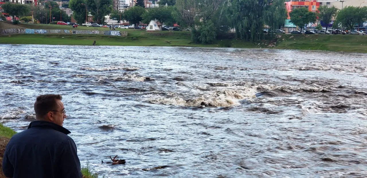 Una creciente de 2.50 metros en el río San Antonio ingresó al centro de Carlos Paz pasadas las 18.30.