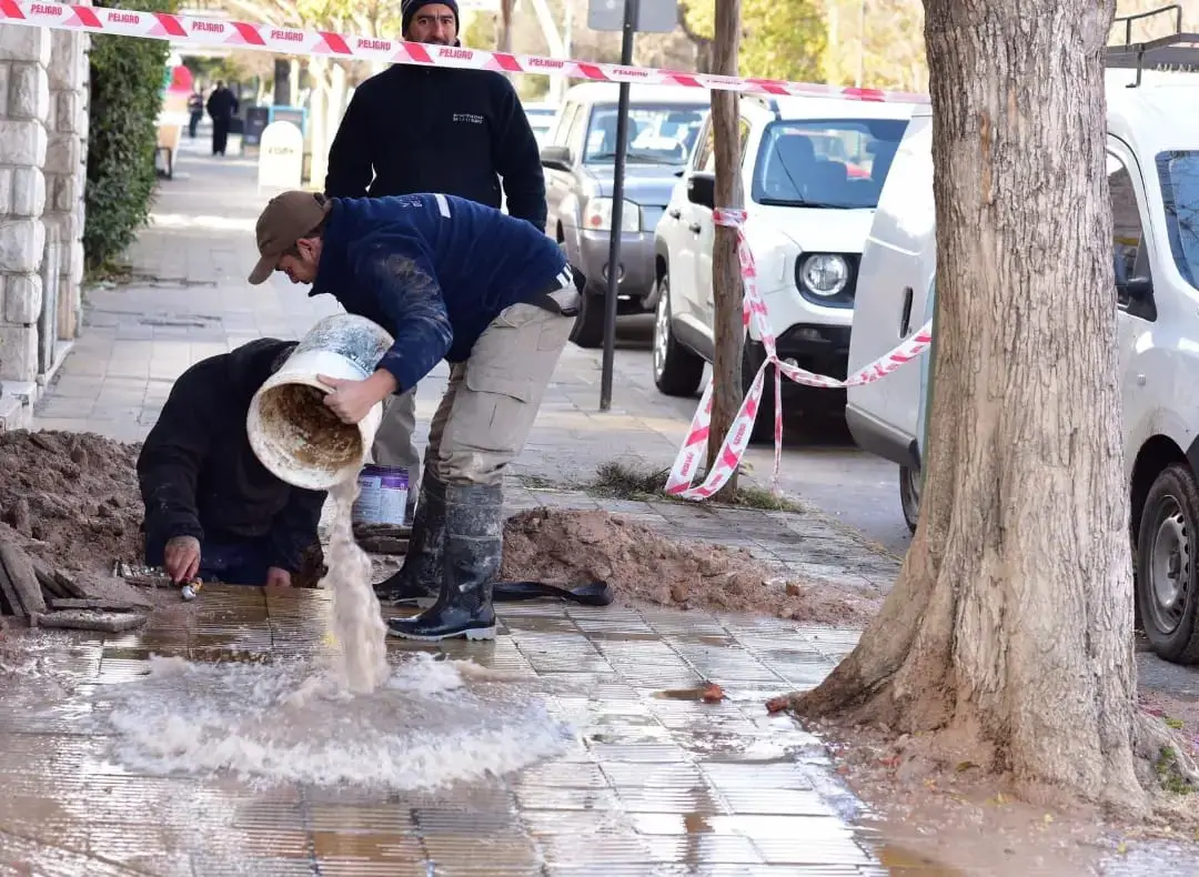 Trabajos similares se realizaran en calle General Paz, donde se realiza la reparación del caño maestro que ya ha sido identificado y debidamente señalizado.