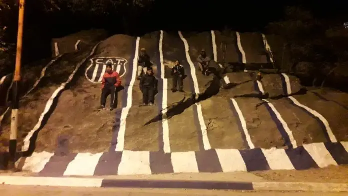 Pero la Piedra de ‘La Curva de la T’, en la Cuarentena, pasó de un simple escudito Tallarín… a esta obra ya más completa.