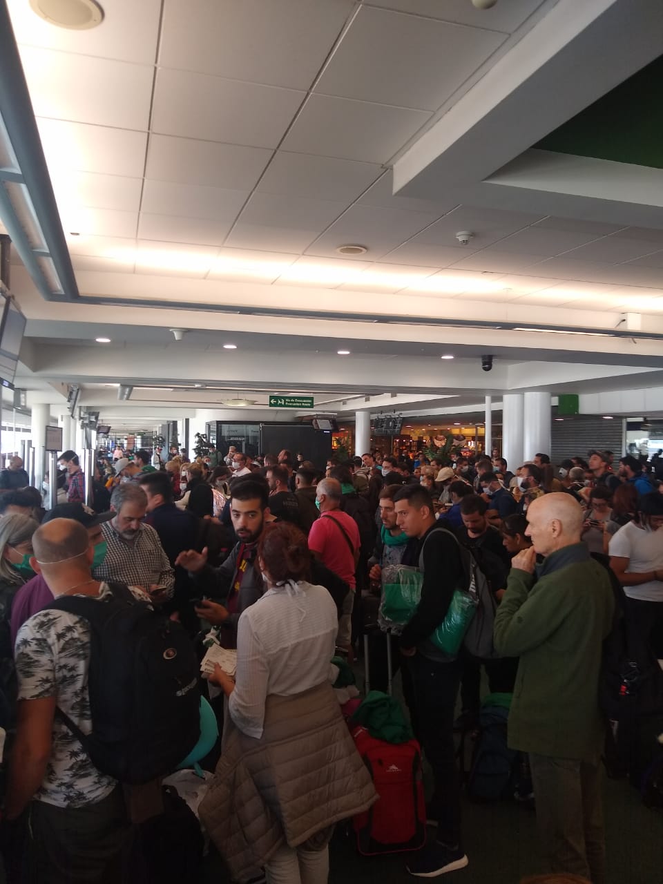 “Anoche a las 2 salió un vuelo. Estaba lleno y había gente en lista de espera. Sin hacer cola pasó un funcionario con sus esposa e hijos. En la lista había gente enferma, médicos y chicos. Toda esa gente quedó varada, aquí”, le contó a Carlos Paz Vivo.