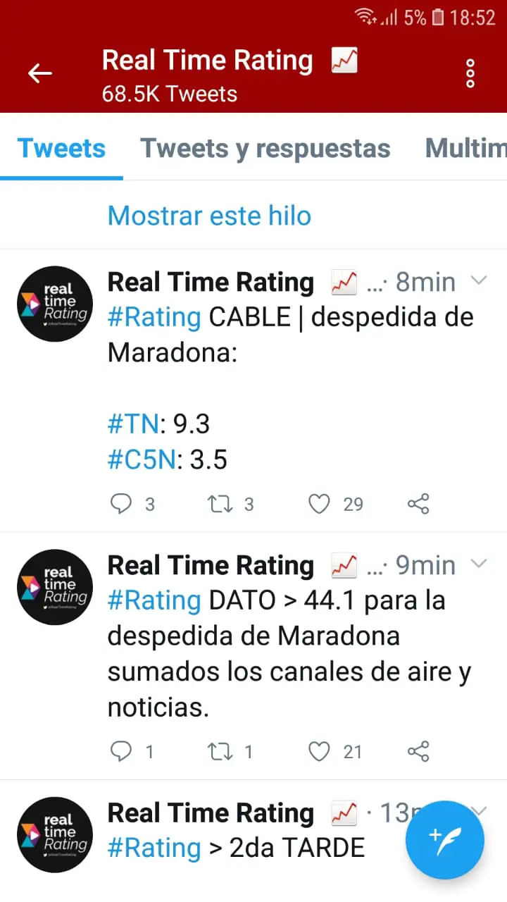 Por caso, el encuentro entre Argentina y Nigeria, el 26 de julio de 2018, tuvo un rating de 40.5 mientras que el partido en el que Francia dejó afuera a la Selección, el 30 de julio, sí superó apenas a la transmisión de la despedida del 10, con 45.3 puntos.