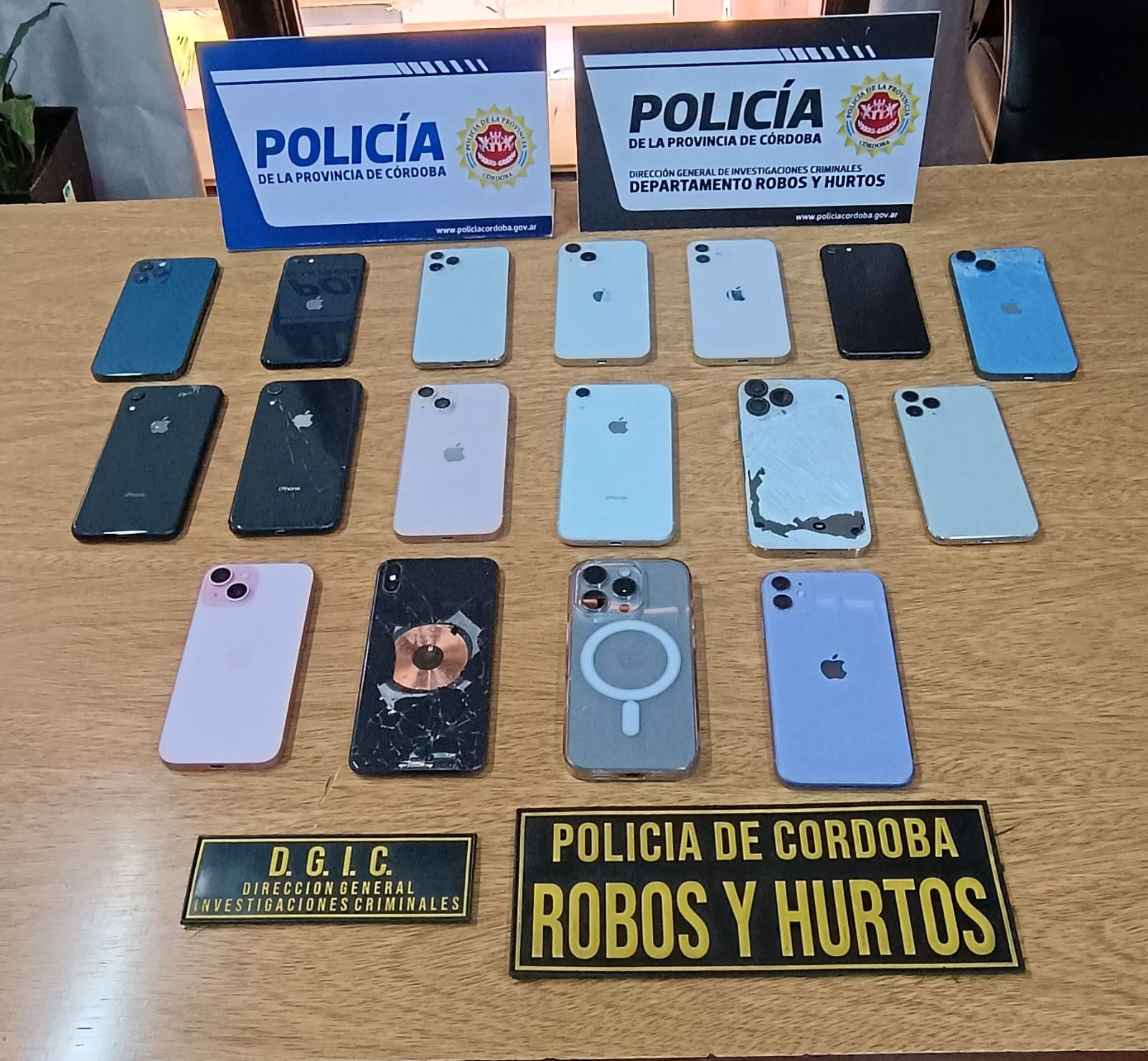Una mujer fue detenida este lunes en la ciudad de Córdoba y la Policía secuestró 16 teléfonos celulares de marca Iphone que habían sido robados a sus dueños durante la edición del Cosquín Rock.