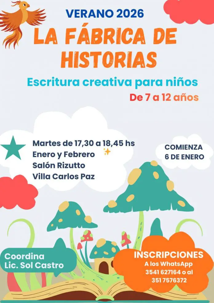 En el Salón Rizzuto de Villa Carlos Paz, durante el verano, se dictará un Taller intensivo de escritura creativa para niños y niñas de 6 a 12 años. La idea es poner en marcha la gran imaginación de los chicos para relatar historias, despegando la escritura de la presión escolar.