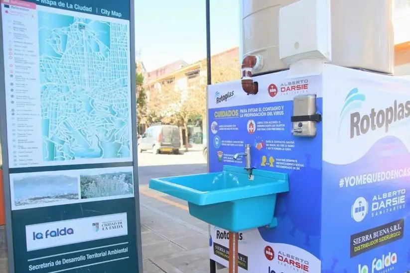 En las últimas horas, y con el objetivo de contribuir a que los vecinos de la ciudad se cuiden y mantengan las medidas de higiene correspondientes para evitar eventuales contagios de COVID-19, la Municipalidad de La Falda instaló un lavatorio de manos en la zona céntrica.