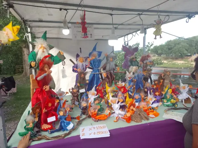 Los diferentes stand que se exhiben cuentan con productos artesanales elaborados en cuero, vidrio, lana, diversas telas y texturas. Se venden cuadros, mates, bijouterie, objetos decorativos, títeres, prendas para todas las edades, calzado, carteras, bolsos, cinturones, cuadernos, ropa para muñecas, muñecos y juguetes de manera, alimentos y repostería artesanal, entre otros.
