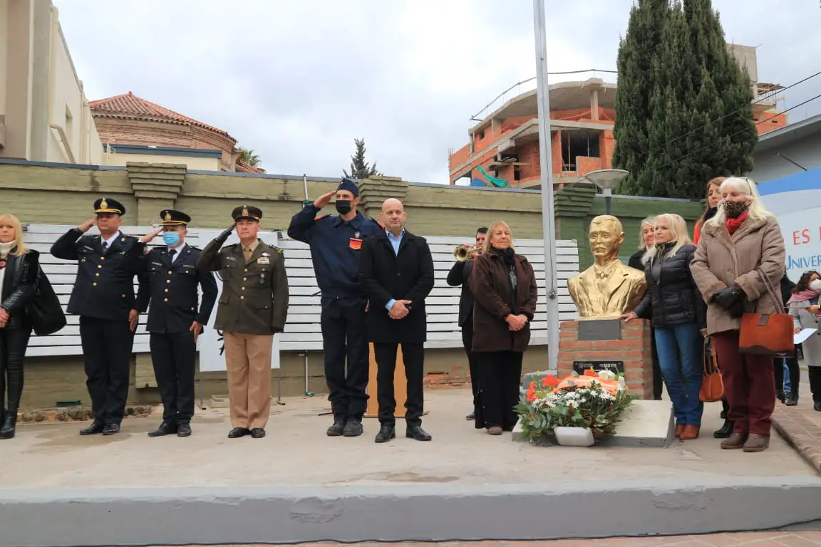 Antes de la ceremonia religiosa, las autoridades locales junto al cura párroco, Mario Bernabey y familiares del fundador, Carlos Nicandro Paz, entregaron una ofrenda floral en la estatua que lo recuerda en ella plazoleta trasera de la iglesia.