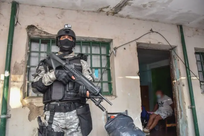 El operativo se desarrolló de manera simultánea en cinco domicilios, de los cuales tres se localizaban en la ciudad de Alta Gracia y dos en la localidad de Anisacate.