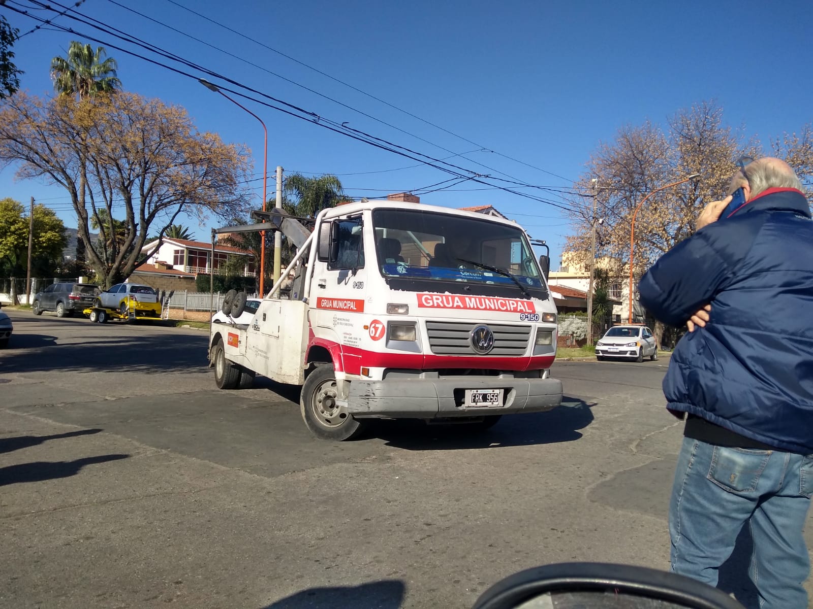 La grúa municipal intentó secuestrar el auto con los parlantes que propalaba los mensajes de campaña del candidato de Juntos por Carlos Paz, Emilio Iosa.