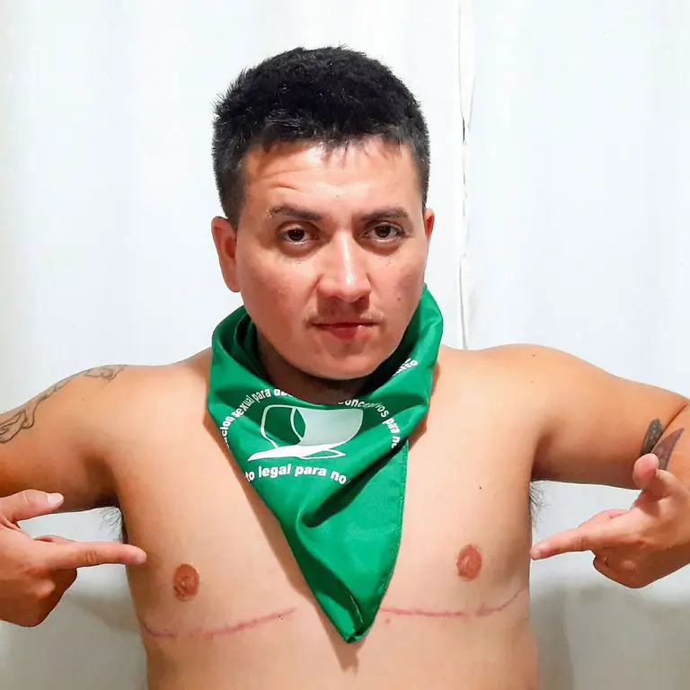 Benjamín en una foto actual, después de la cirugía de masculinización de tórax. Gentileza Infobae.
