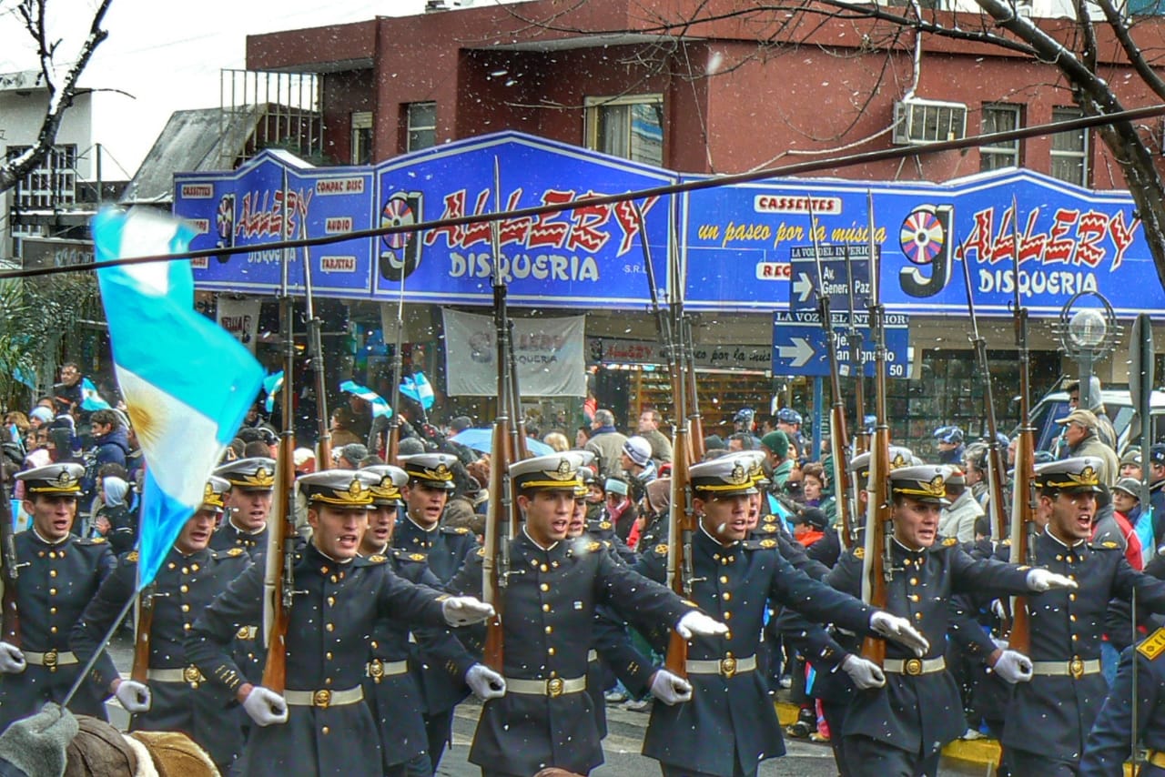 Cuando los soldados desfilaban por el centro de la ciudad, la nieve comenzó a caer copiosamente aquel 9 de Julio de 2007 con el entonces gobernador José Manuel de la Sota encabezando el acto desde el palco.