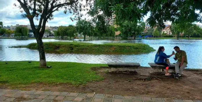 Ella le muestra a el, la foto sacada recién a la nueva maravilla turística que posee Villa Carlos Paz.